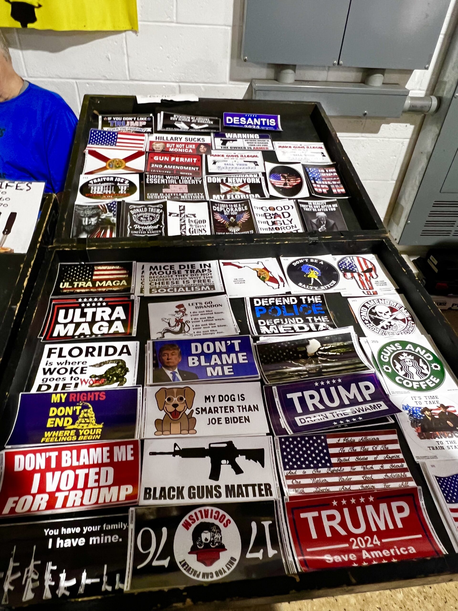 Es erwarten Sie Unmengen an Gewehre, Pistolen, Munition und konservative T-Shirts und Sticker.
