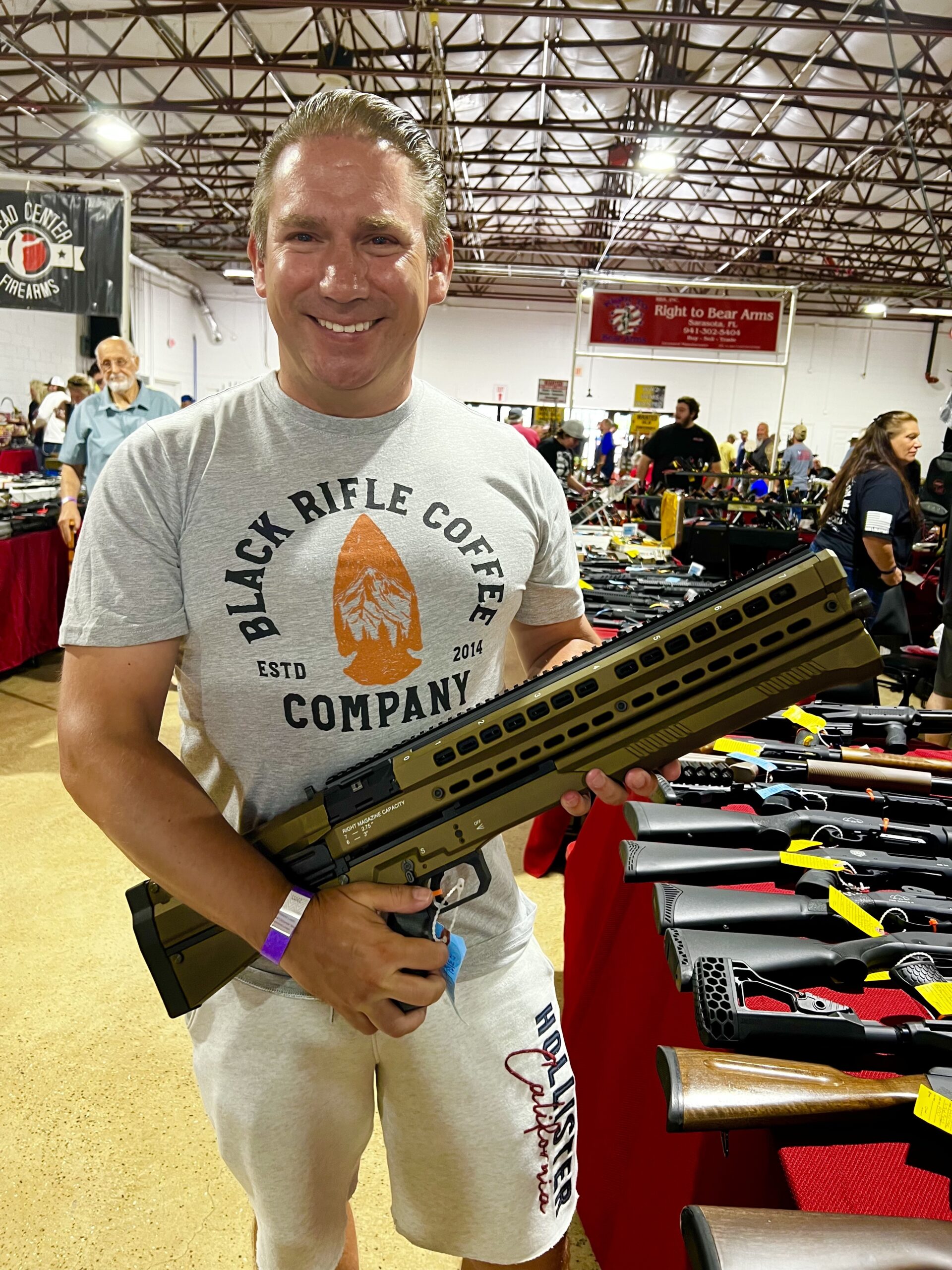 Die Atmosphäre ist sehr familiär und alle Verkäufer sehr freundlich und haben nichts dagegen, dass Sie die Waffen in die Hand nehmen und ein martialische Bild mit Knarre schießen. Touristen sind, wie in allen Teilen von Florida, herzlich willkommen.